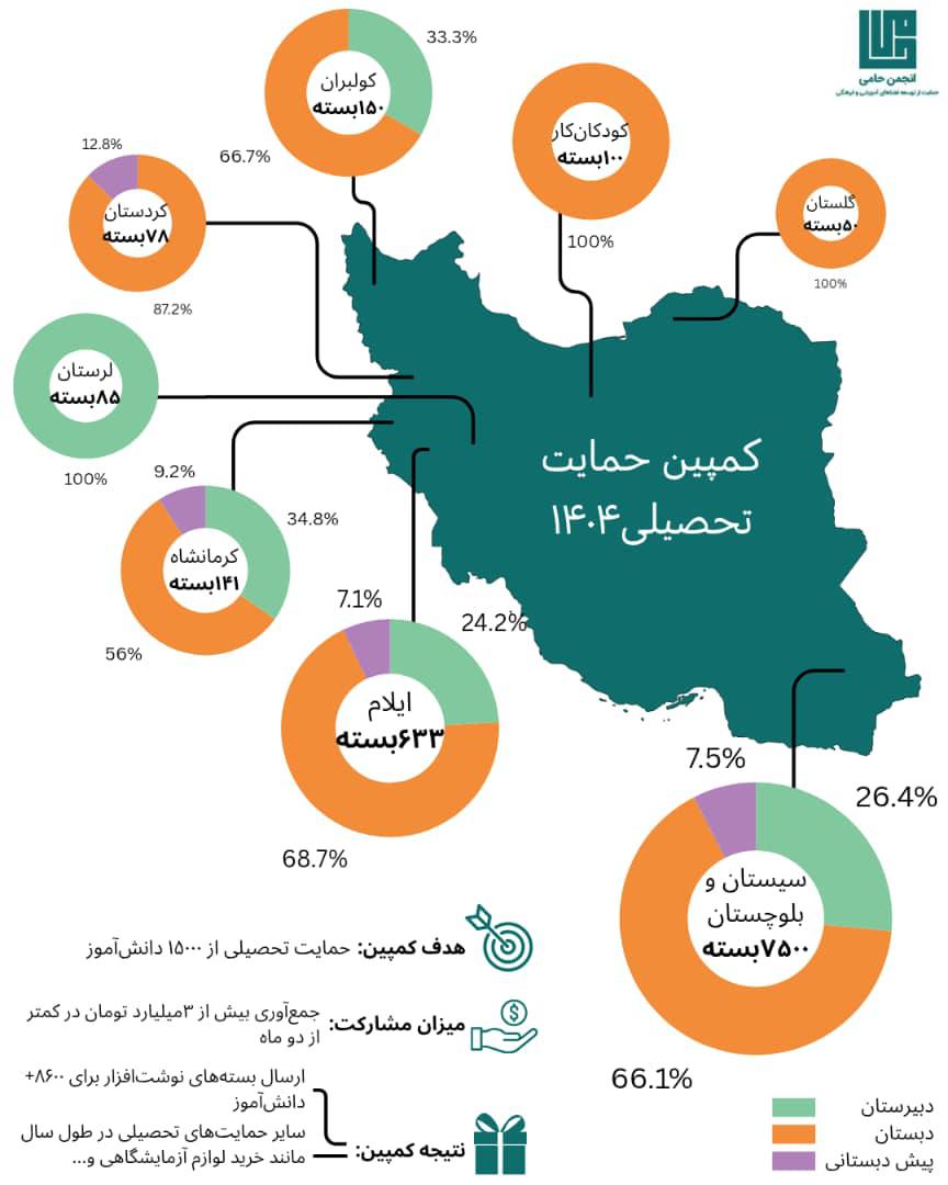 کمپین حمایت تحصیلی ۱۴۰۴ «انجمن حامی» که از ابتدای مردادماه آغاز شده بود، قرار بود در پانزدهم مهر به پایان برسد. خوشبختانه به لطف همراهی و حمایت سخاوتمندانه شما حامیان عزیز، موفق شدیم پیش از موعد و تا پایان شهریور ماه، به هدف خود یعنی تامین ۳۰ میلیارد ریال دست یابیم. در نهایت، مبلغ ۳۴٫۷۵۷,۲۷۵,۴۰۰ ریال جمعآوری و بستههای نوشتافزار نیز در آستانه سال تحصیلی برای دانشآموزان ارسال گردید.